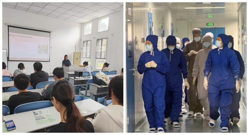 上午10:00,中心刘艳老师围绕“影响动物实验的因素、屏障系统运行方式、人流-物流-动物流、常见违规案例”等内容展开理论培训,并演示了IVC笼盒使用、笼卡标识注意事项。理论培训结束后,刘艳老师携带全体学员进入屏障系统内,并进行了入室流程的全流程演示,包括进出、更衣、物品传递、无菌接触、废弃物处理等细节。